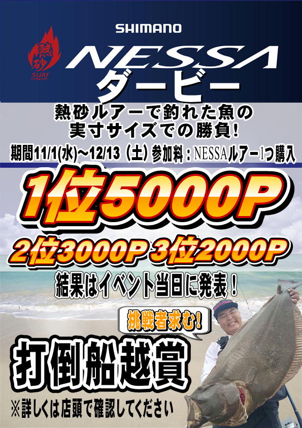 11/1(水)〜12/13(土)の期間でシマノ様ご協賛のもと