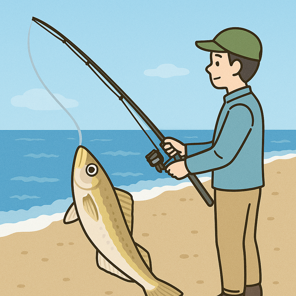- 遠州灘のサーフ(砂浜)では、波打ち際から10~50mほどの距離でも釣れることが多く、初心者でも楽しめます。